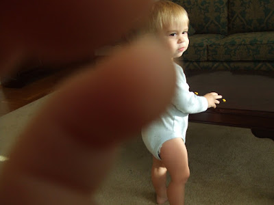 But these. These two I thought were pretty outstanding, hand over the lense notwithstanding. (The third is a close-up crop of the second.) Since my little golden-haired wonder Charlie is now exactly eighteen months old, I thought I'd share Henry's photographic genius and Charlie's gobble-him-up goodness with you.