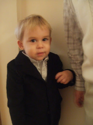 I'm organizing photos, prepping for the millions that I will soon be taking every minute of every day with my new camera, and I just noticed that I never posted these snapshots of Charlie in the suit that his Aunt Lesli gave him. It's impossible to not post such extreme cuteness, IMHO.