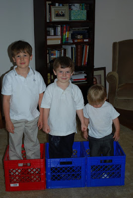 And of course, I can't complain about the times when the boys build a train or a boat with the bins and I turn around to see them all cooperating and giggling together.