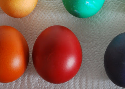 I found egg coloring kits here and was really excited about that. David deciphered the directions and went at it with the boys. The colors turned out so much more vivd than any other eggs I've ever colored (Ukraine does it better than Paas?!) and I especially liked how the brown eggs we colored turned out so rich looking (the rust, deep red and purple colored ones). Calvin made one that looked like the Ukrainian flag (top row, third from either side).